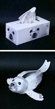 Nah, selain kemasan snack ada juga packaging tisu. Dengan kekuatan inspirasi jeng jeng jeng! Jadilah kotak tisu yang lebih imut, bentuknya kayak Walrus yang biasanya hidup di lautan es. Lucuuukk!