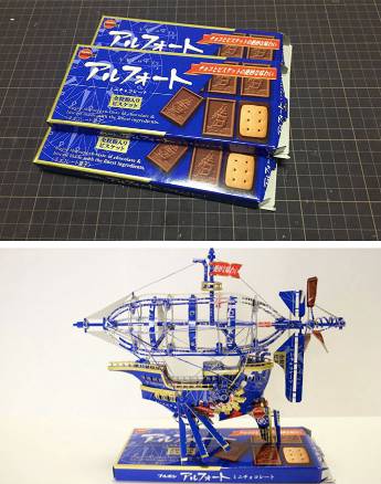 Yang ini malah parah dua kali gokilnya! Dari sebungkus biskuit coklat, ternyata bisa dibikin miniatur kapal yang punya detail kecil-kecil. Setiap detail itu menjadikan miniatur kapal terlihat seperti nyata.