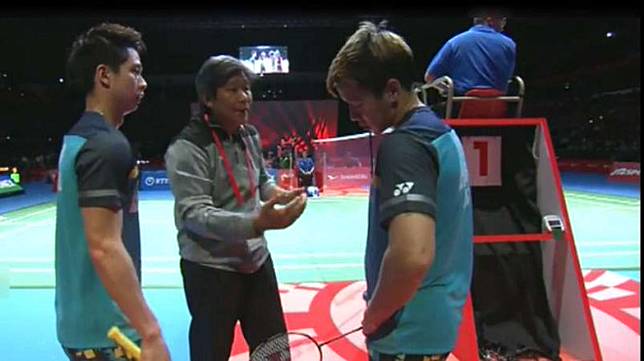 Li/Liu sempat berhasil mendapatkan 4 beruntun untuk merapatkan perolehan angka. Tapi, dibalas juga dengan 3 angka beruntun dari Kevin/Marcus pada kedudukan 16-13.